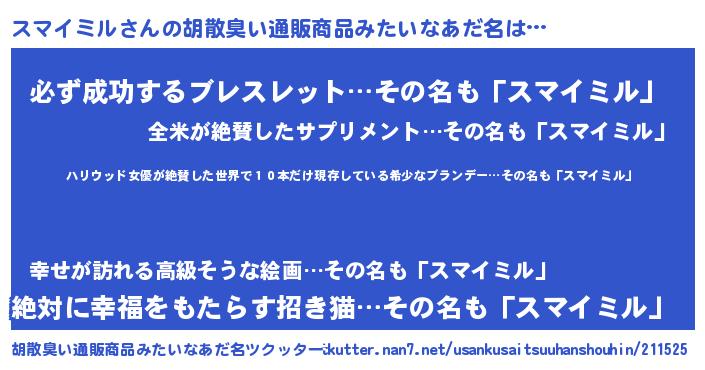 | ヘコむあだ名 | 『スマっふぃ~』『スマイミル(小並感)』 |