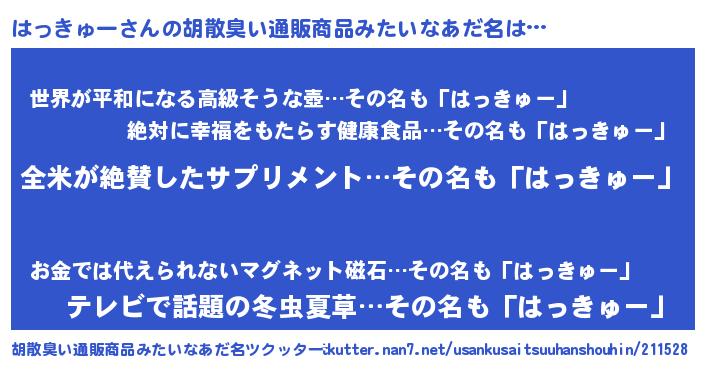 | 意味不明あだ名 | 『とにかく怪しいはっきゅー』 |