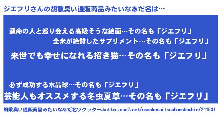| 意味不明あだ名 | 『永久保存ジエフリ』『自称ジエフリ』 |