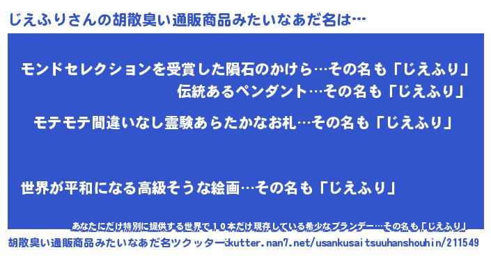 | 男性向けラノベタイトル風あだ名 | 『転生したらじえふりだった件』 |