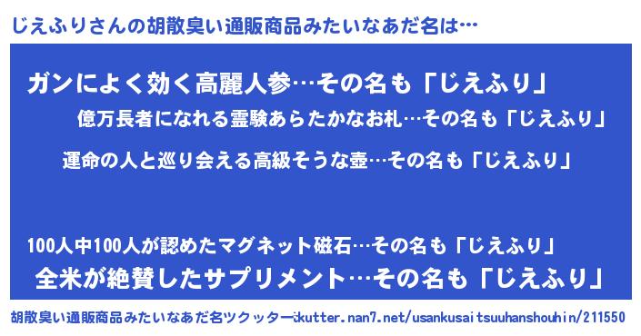 | 肩書あだ名 | 『じえふり大統領』『じえふり閣下』 |