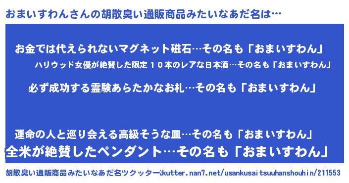 おまいすわんさんの胡散臭い通販商品みたいなあだ名をツクッター!