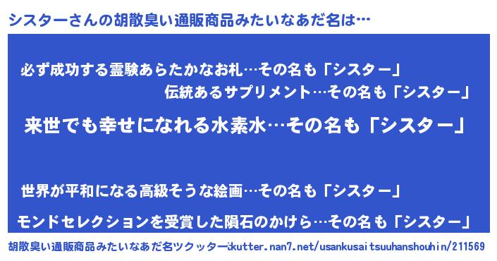 | ヘコむあだ名 | 『シスター(遠い目)』『シスっふぃ~』 |