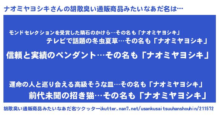 | ヘコむあだ名 | 『ナオっちょ』『ナオミヤヨシキ(笑)』 |