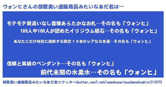 | ヘコむあだ名 | 『ウォもー』『ウォンヒ(苦笑)』 |