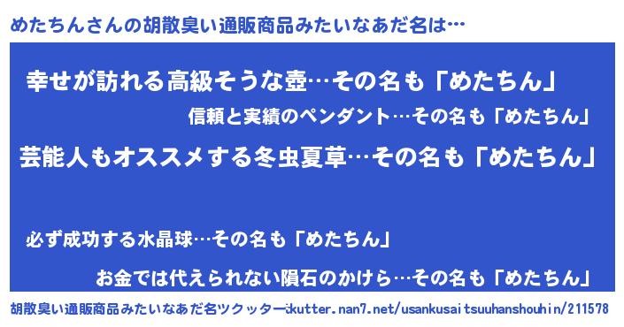 | 肩書あだ名 | 『めたちん総統』『めたちん国家主席』 |