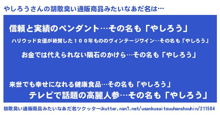 | ヘコむあだ名 | 『やしっぺ』『やしろう(小並感)』 |