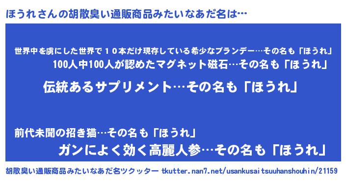 | 意味不明あだ名 | 『とにかく怪しいほうれ』『自称ほうれ』 |