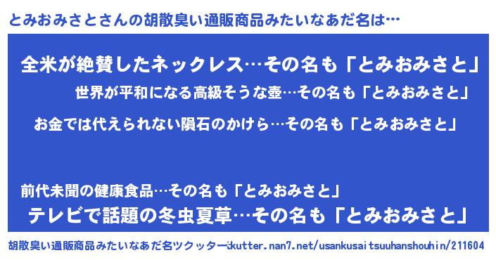| 女子向けラノベタイトル風あだ名 | 『とみおみさと恋絵巻』 |