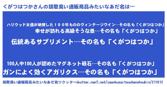 | 意味不明あだ名 | 『とにかく怪しいくがつはつか』 |