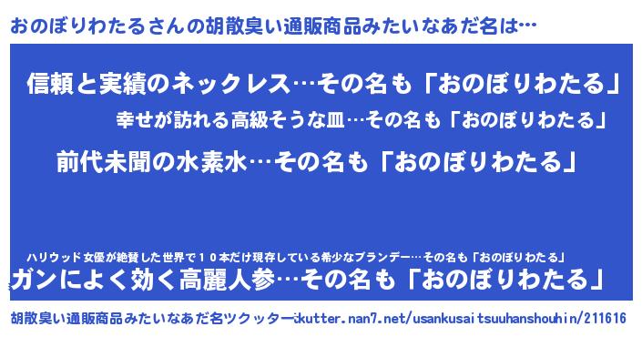 | 意味不明あだ名 | 『永久保存おのぼりわたる』 |