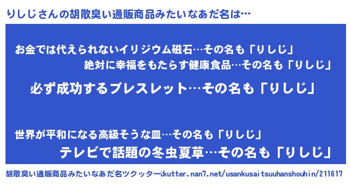 | 男性向けラノベタイトル風あだ名 | 『緋弾のリシジ』『りしじの憂鬱』 |