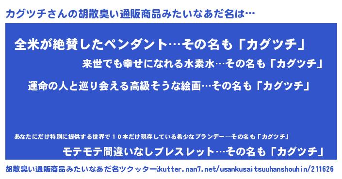 | ヒーロー風カッコイイあだ名 | 『ウルトラカグツチマン』『暗黒騎士カグ』 |