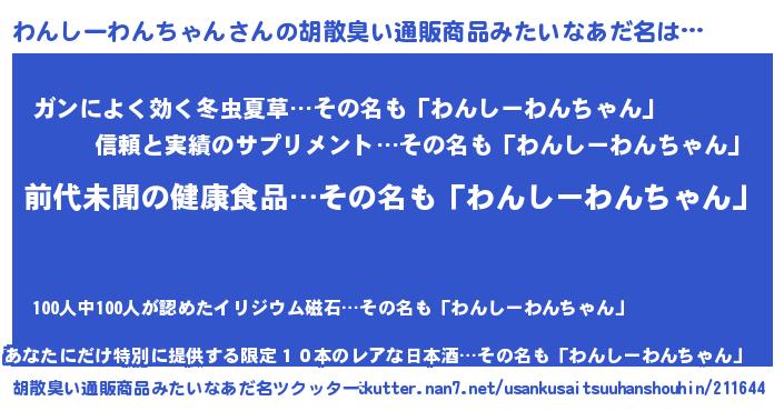 | 意味不明あだ名 | 『永久保存わんしーわんちゃん』 |