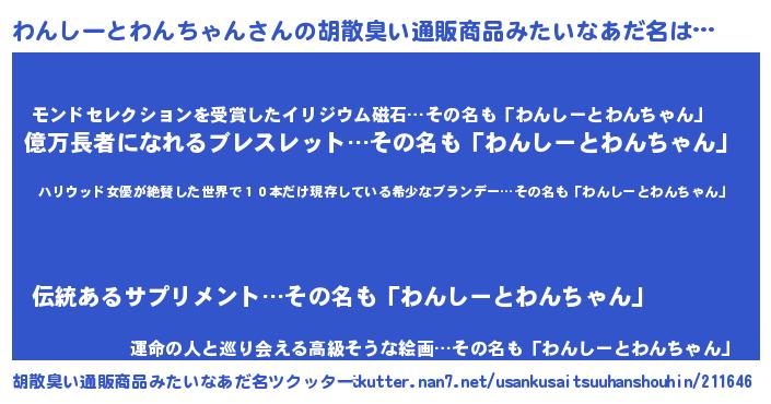 | 欧米人風あだ名 | 『アンジェラ・わんしーとわんちゃん』 |
