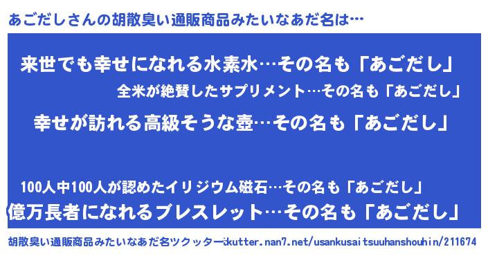 | ヒーロー風カッコイイあだ名 | 『ウルトラあごだしマン』『ネオアゴダシ』 |