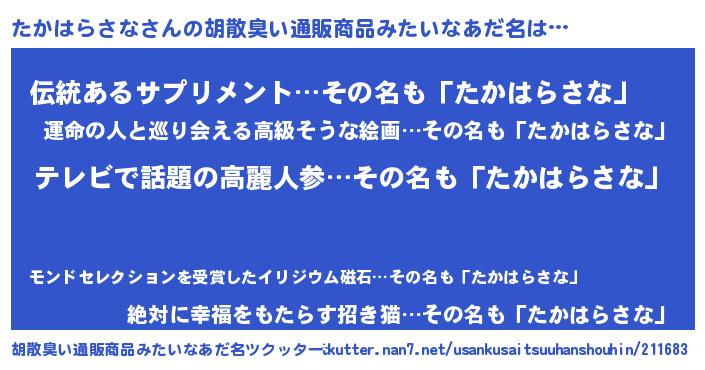 | ポケモン風あだ名 | 『タカセウス』『ヒタカハラサナ』 |