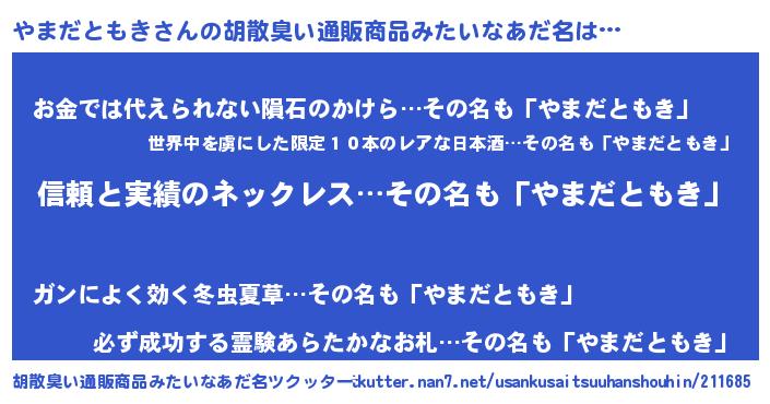 | ポケモン風あだ名 | 『メロヤッマ』『ヒヤマダトモキ』 |
