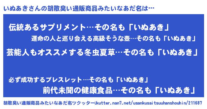 | ヘコむあだ名 | 『いぬっちょ』『いぬあき(笑)』 |
