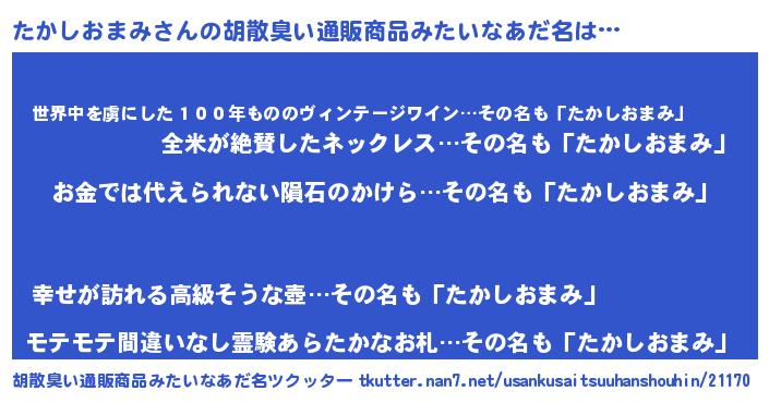 | ヒーロー風カッコイイあだ名 | 『友情の使者たかしおまみ』 |