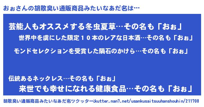 | ヒーロー風カッコイイあだ名 | 『天空の使者おぉ』『最強戦士オォ』 |