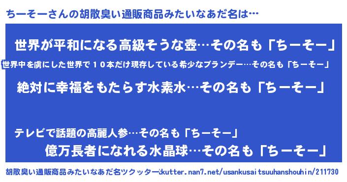 | ヒーロー風カッコイイあだ名 | 『ネオチーソー』『ウルトラちーそーマン』 |