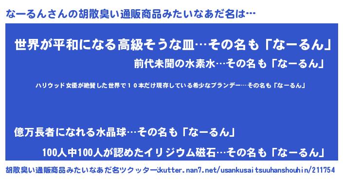 | 意味不明あだ名 | 『住所不定無職なーるん(91歳)』 |