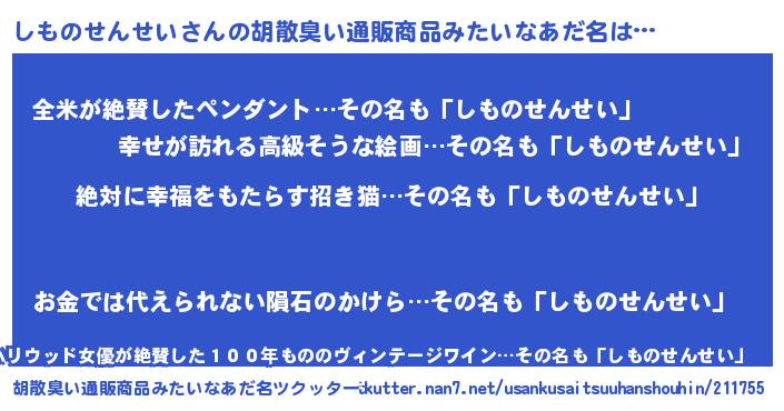 | ヘコむあだ名 | 『しものせんせい(笑)』『しもっぺ』 |