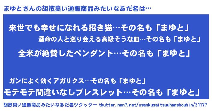 | ファンタジー風あだ名 | 『ファントムマユス』『マユディッシュ』 |