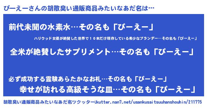 | ヘコむあだ名 | 『ぴーお』『ぴーえー(震え声)』 |