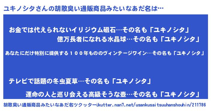 | 意味不明あだ名 | 『住所不定無職ユキノシタ(6歳)』 |