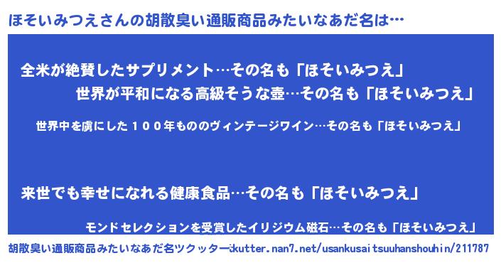 | 可愛いあだ名 | 『ほーみん』『ぽよほそ』『ほそちー』 |