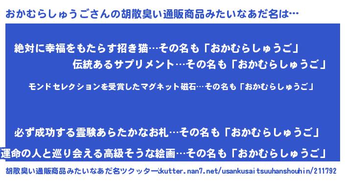 | 肩書あだ名 | 『おかむらしゅうご教授』 |