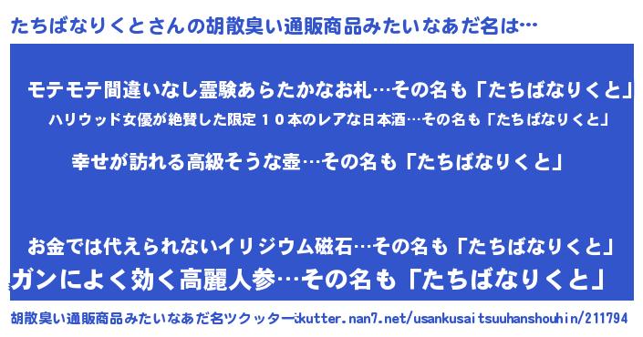 | 伝説のあだ名 | 『秘められし忍者たちばなりくと』 |