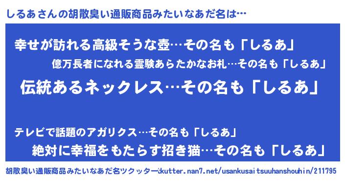 しるあさんの胡散臭い通販商品みたいなあだ名をツクッター!