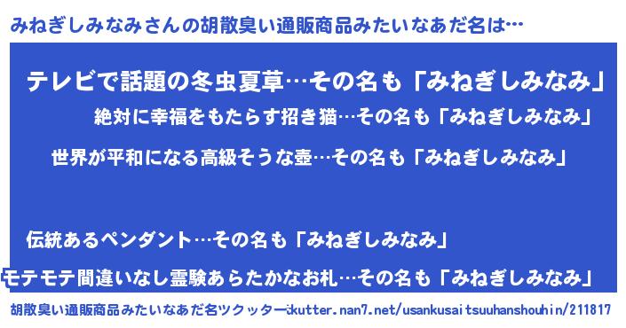 | 意味不明あだ名 | 『みねぎしみなみフォーエバー』 |