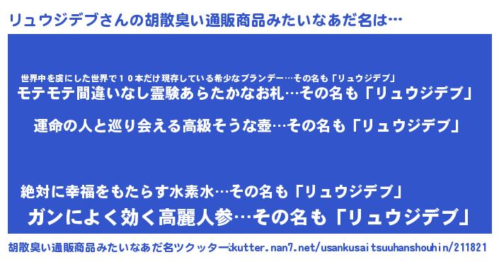 | 意味不明あだ名 | 『リュウジデブフォーエバー』 |