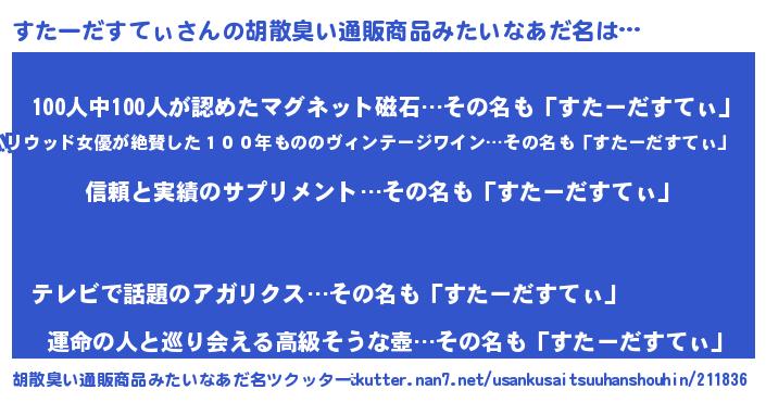 | 意味不明あだ名 | 『とにかく怪しいすたーだすてぃ』 |