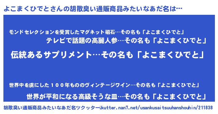 | 欧米人風あだ名 | 『ウサインよこまくひでと』 |