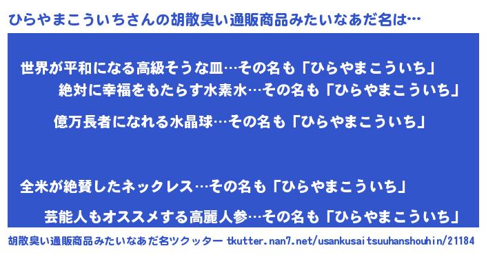 | 意味不明あだ名 | 『ペロリンひらやまこういち』 |