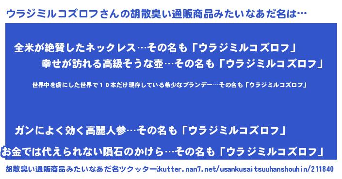 | 意味不明あだ名 | 『住所不定無職ウラジミルコズロフ(93歳)』 |