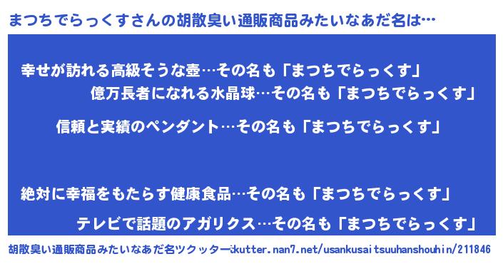 | 欧米人風あだ名 | 『ウサインまつちでらっくす』 |