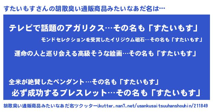 | 欧米人風あだ名 | 『すたいもすクリステル』 |