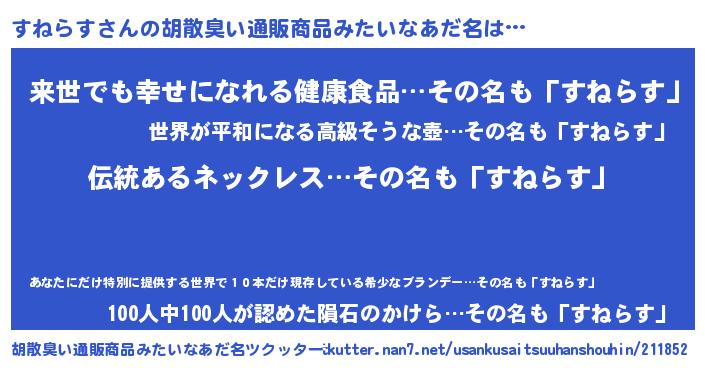 | 意味不明あだ名 | 『とにかく怪しいすねらす』 |