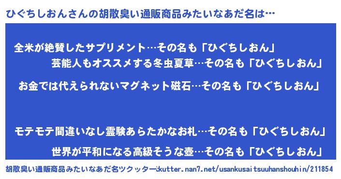 | ヒーロー風カッコイイあだ名 | 『慈愛の使者ひぐちしおん』 |