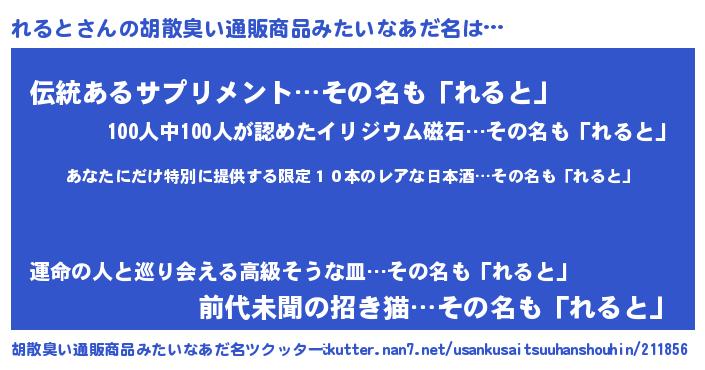 | 意味不明あだ名 | 『住所不定無職れると(56歳)』 |