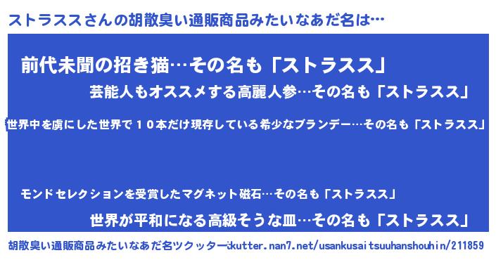 | ヘコむあだ名 | 『ストラスス(震え声)』『つくし』 |