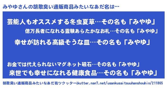 みやゆさんの胡散臭い通販商品みたいなあだ名をツクッター!
