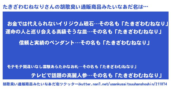 | 意味不明あだ名 | 『とにかく怪しいたきざわむねなり』 |