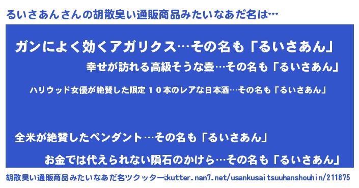| 欧米人風あだ名 | 『ダレノガレるいさあん』 |